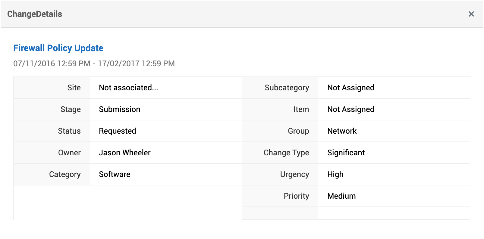 您可以从“筛选显示”组合框中选择更改类型。您可以查看打开的更改、已批准的打开更改、所有更改以及已完成的更改。