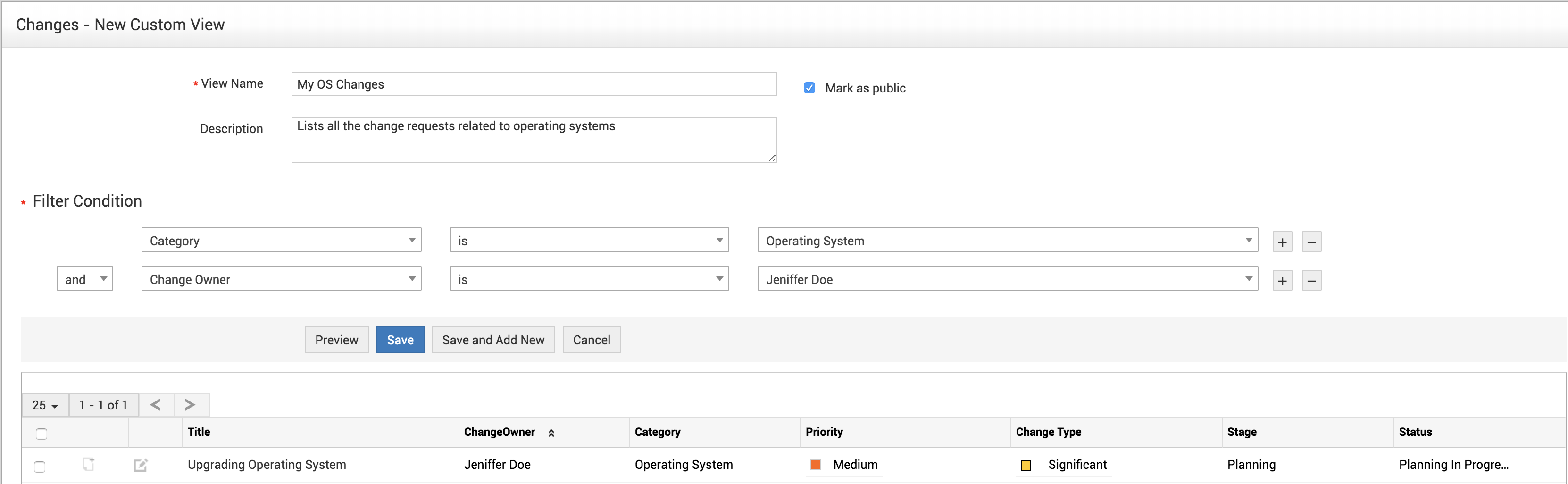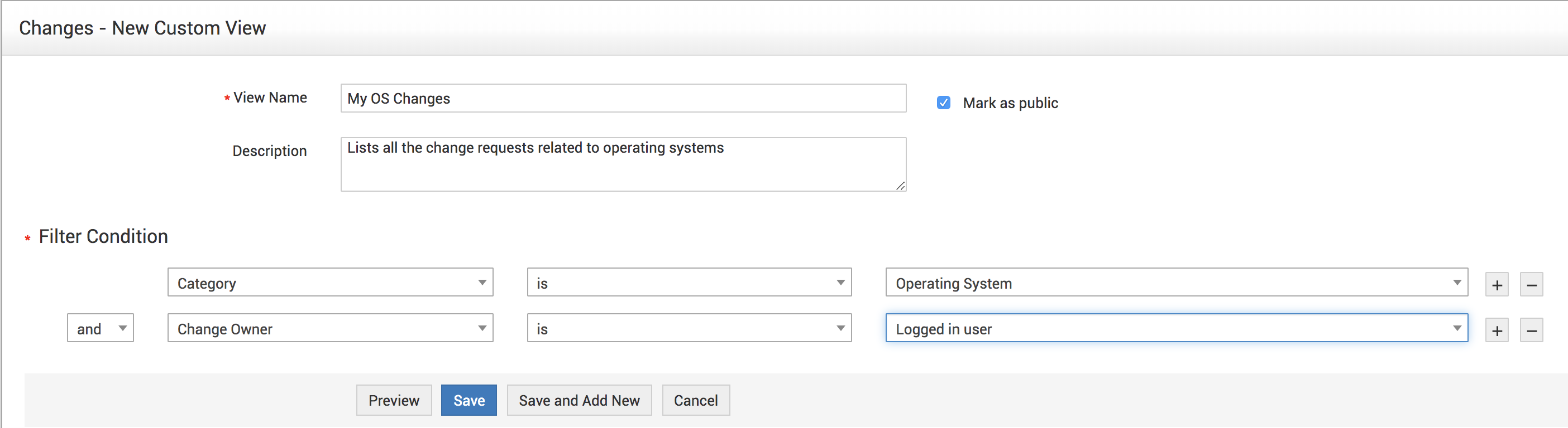 如果您希望向所有可以查看变更模块的用户显示该筛选器,请将筛选器标记为“公共”。