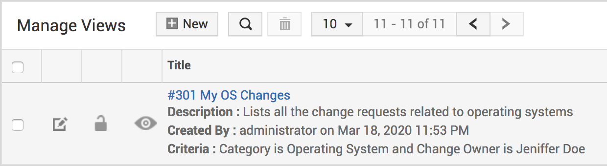 下,您可以快速预览自定义筛选器并将其标记为公共。您还可以在“管理视图”中搜索、添加和编辑自定义筛选器。要执行这些操作,请使用如下所示的相应图标: