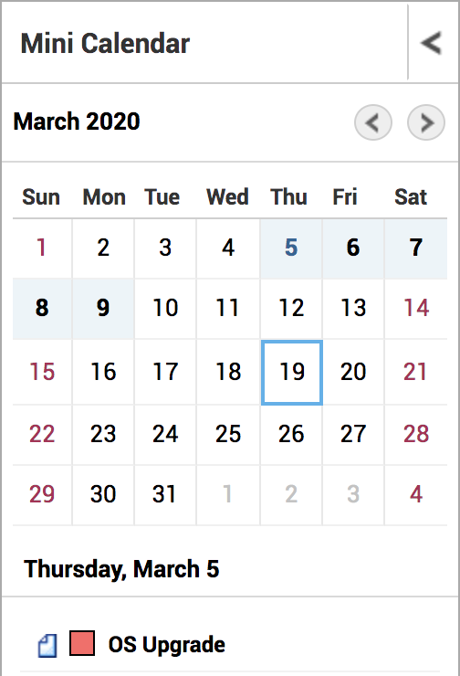左侧窗格中的迷你日历显示当前月份已安排的变更请求。您可以切换月份来查看不同的变更计划。您还可以通过单击