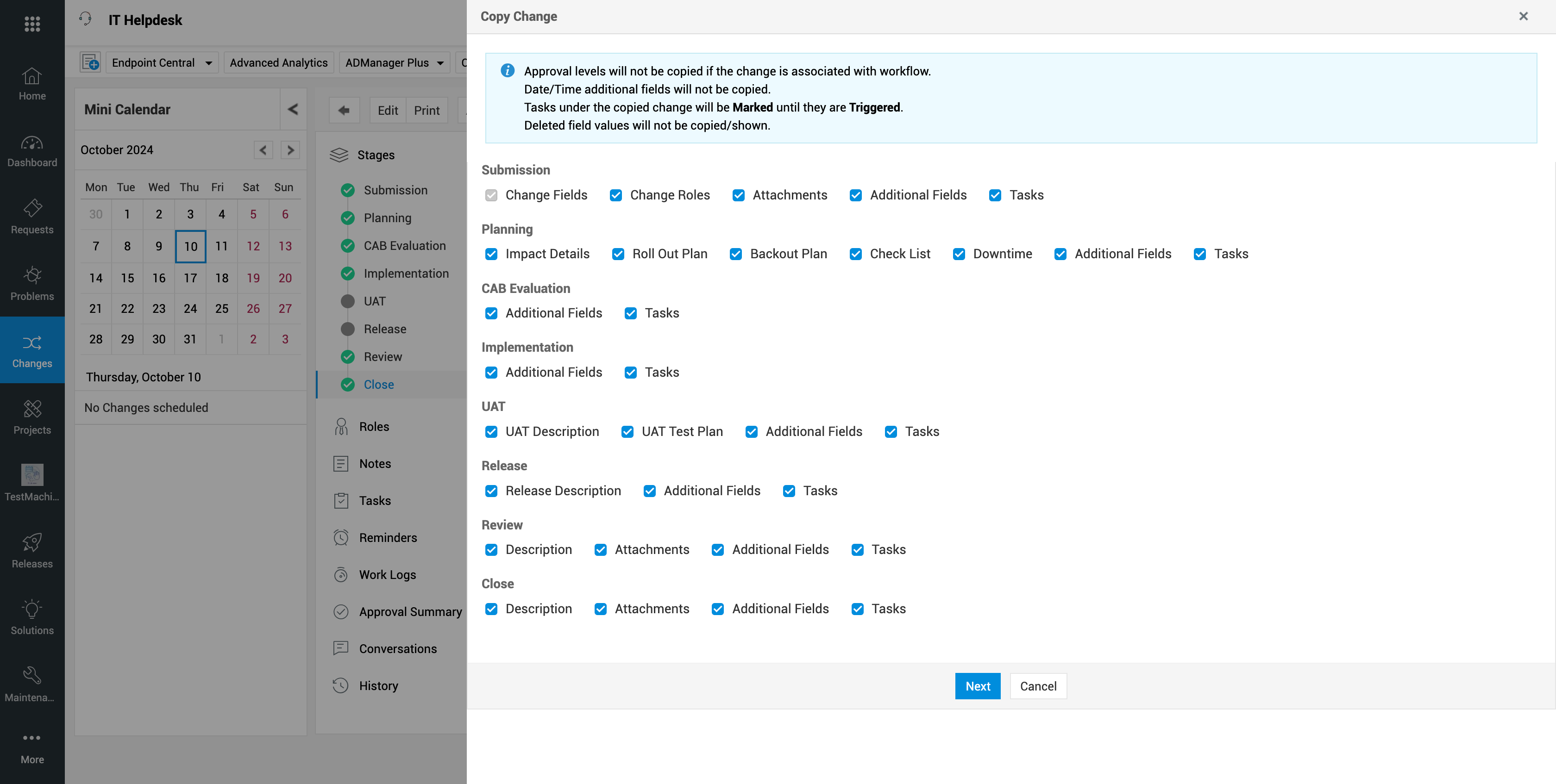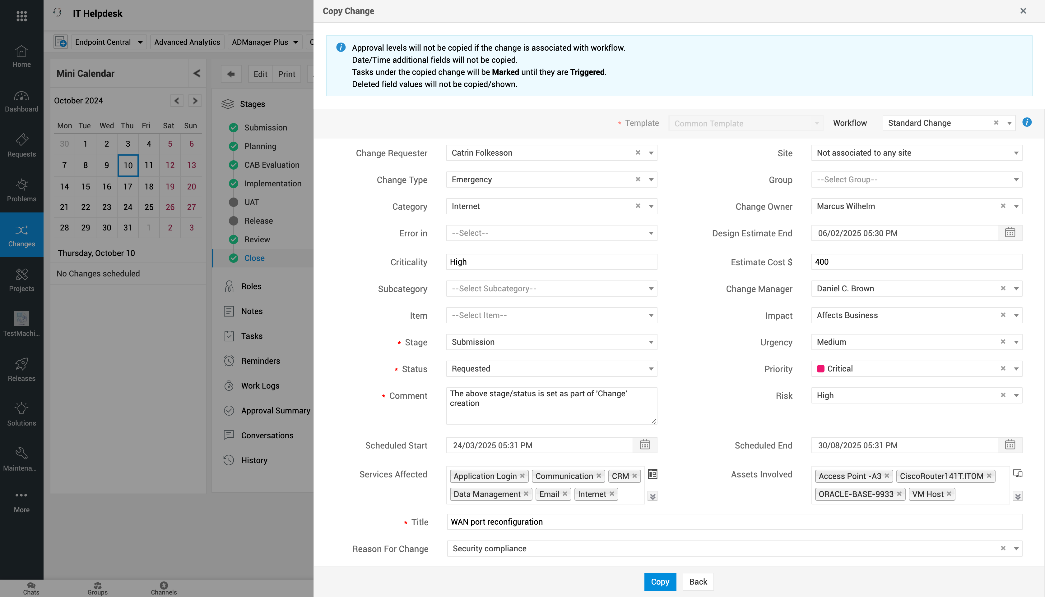 使用场景:组织中的重复性变更可以通过复制现有变更详情,快速记录到服务台中。