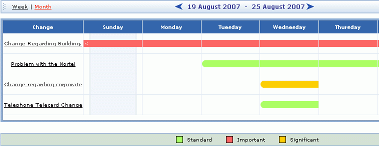 点击页面上方的周链接,查看每周的变更计划,如下图所示。点击向左箭头