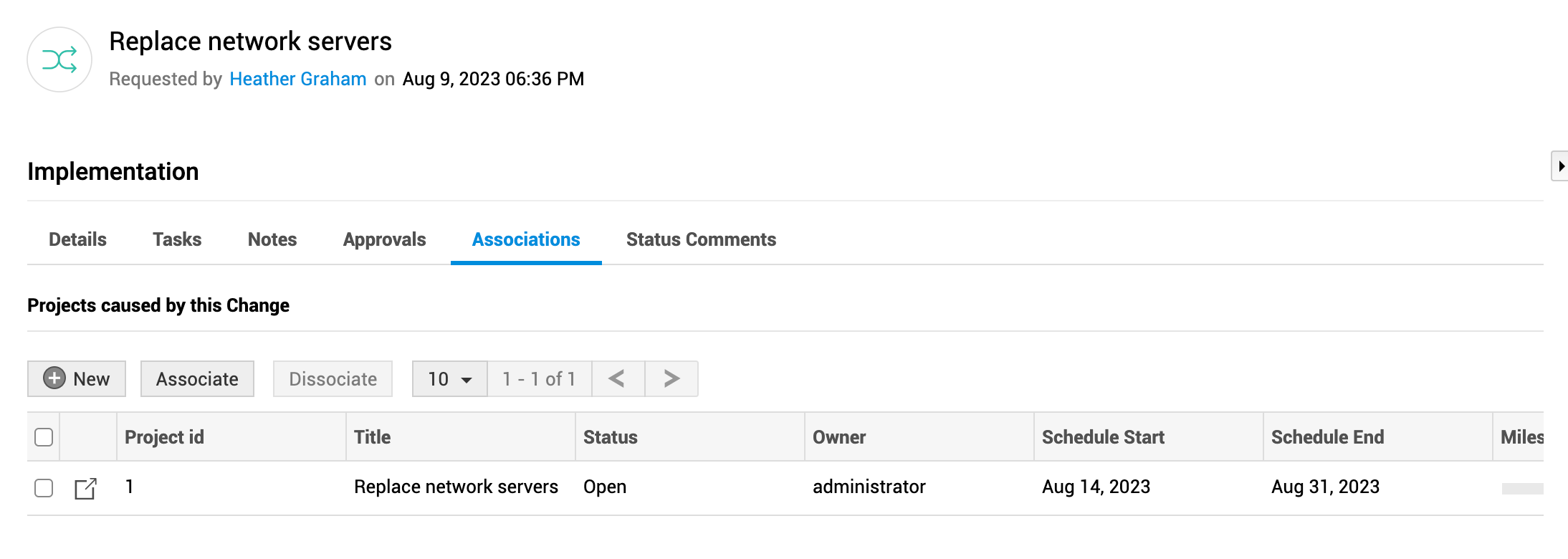 创建并关联项目请求:您可以使用更改详情创建项目请求,并将其与更改请求关联。