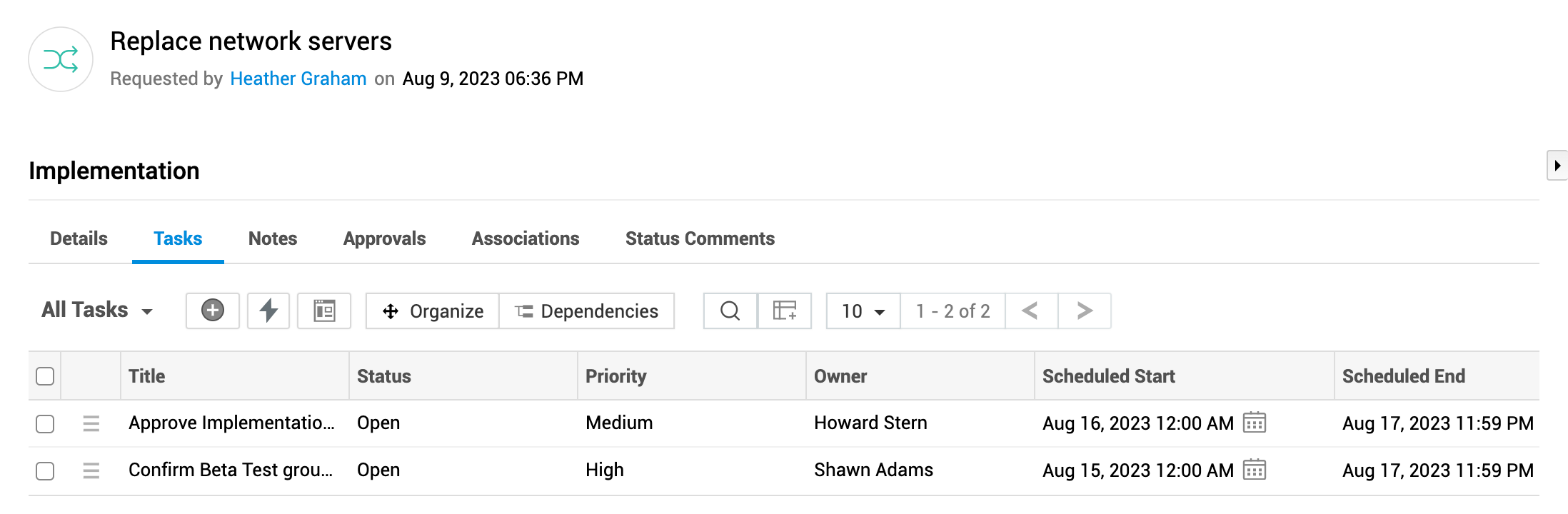 您可以添加和管理任务,以分解实施阶段所涉及的工作。