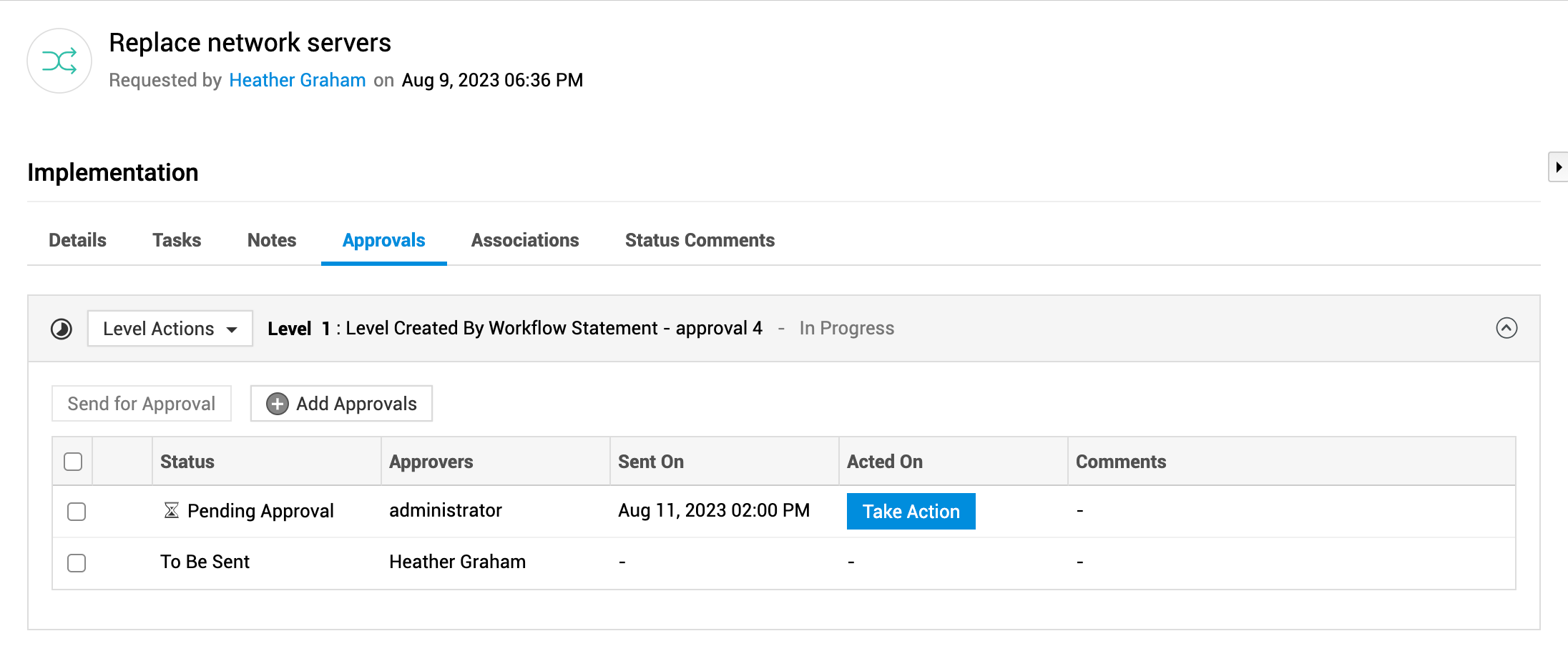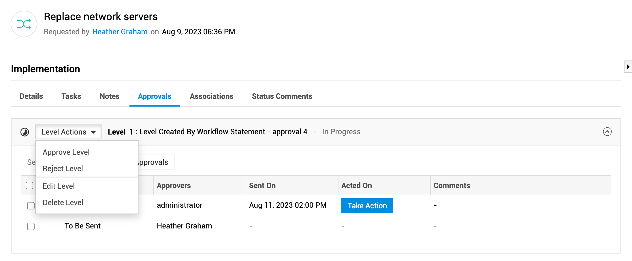 通过层级操作下拉菜单,您可以根据权限批准、拒绝、编辑或删除审批层级。