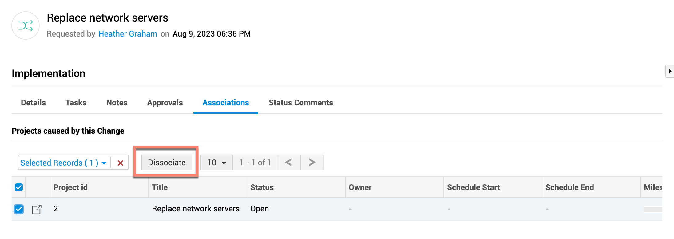 要移除已关联的项目,请选择项目请求并点击取消关联。
