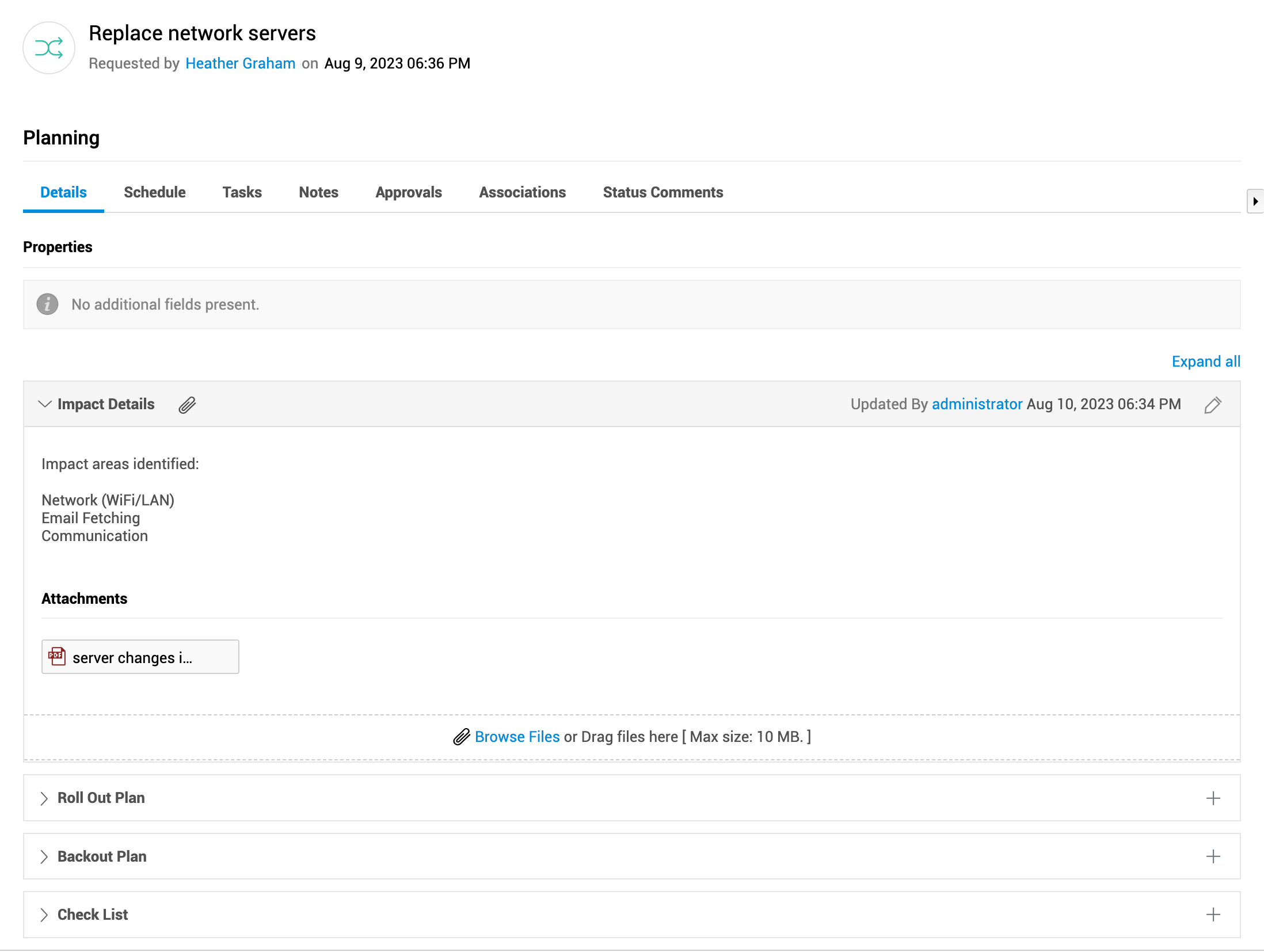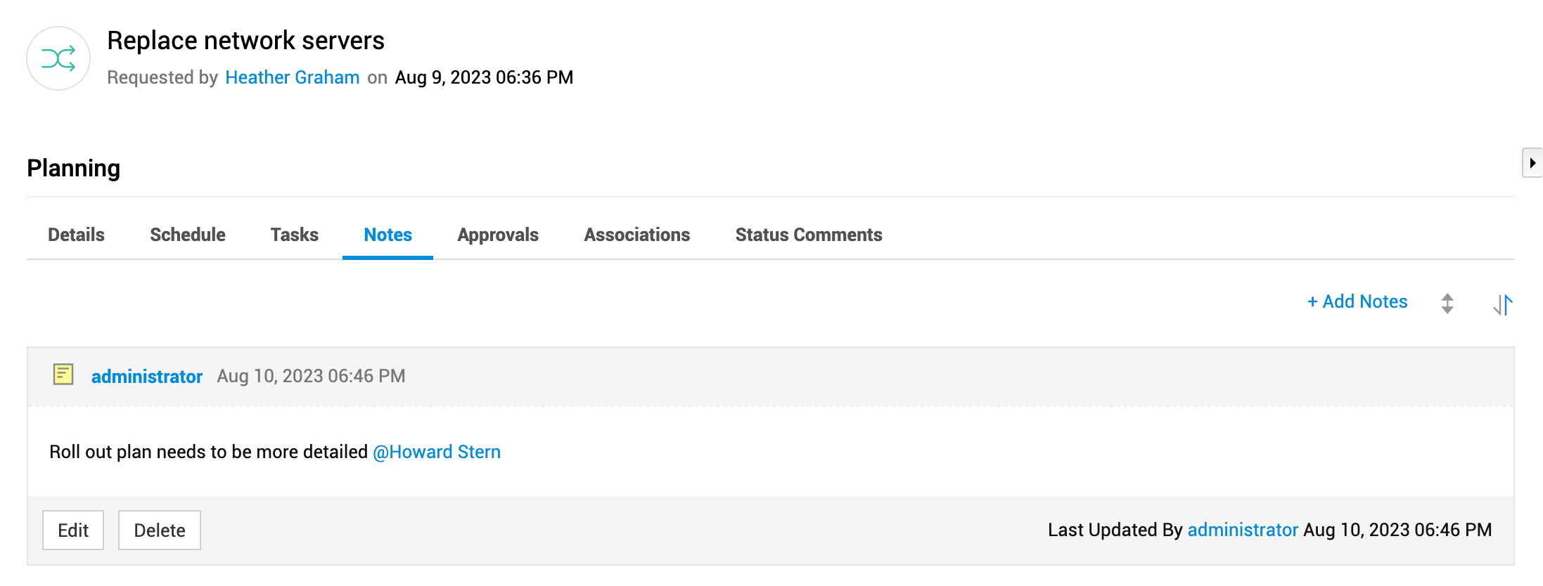 技术人员可以添加备注,添加与变更规划相关的重要信息,并标记用户以通知他们。