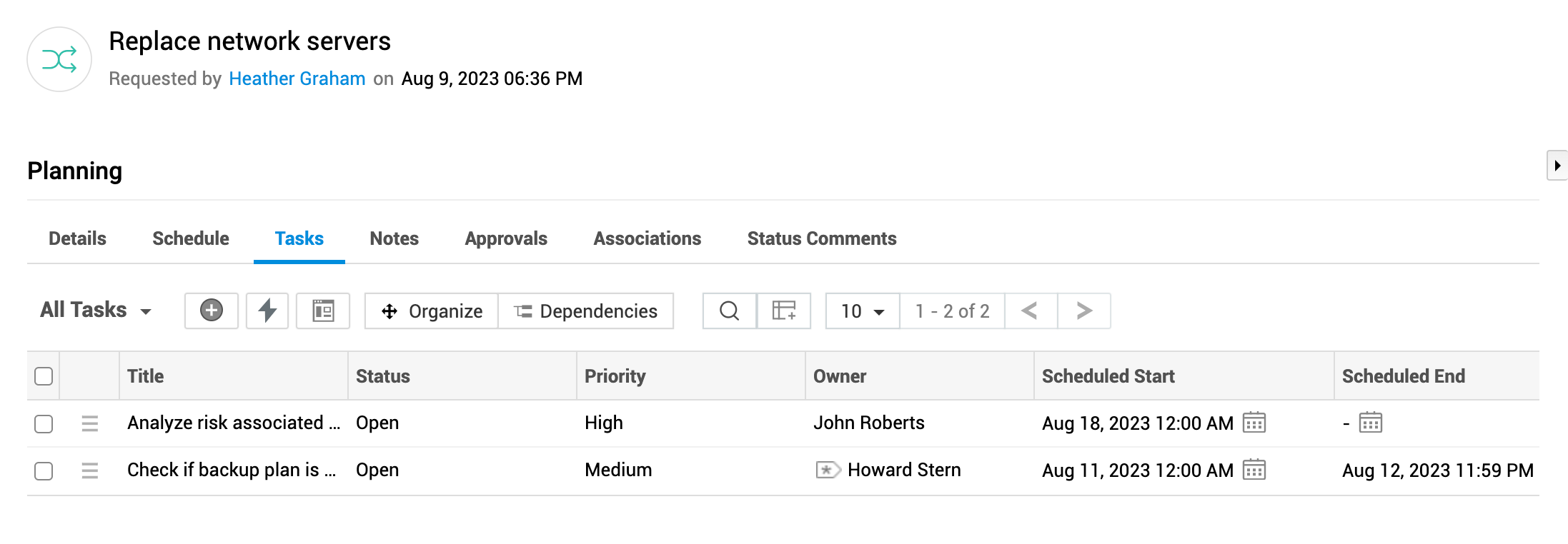 您可以添加和管理任务,以分解规划阶段涉及的工作。