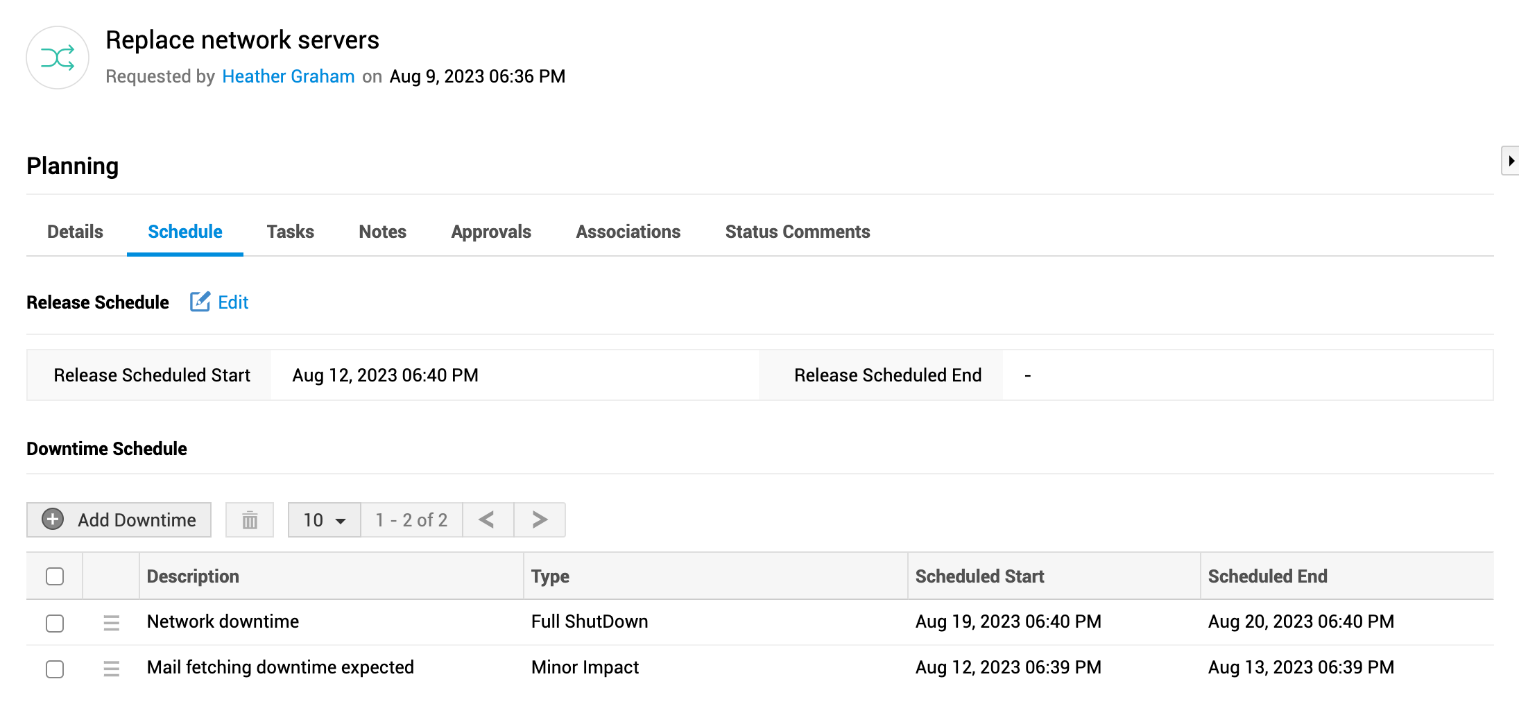 规划变更发布的时间,并安排在实施变更时可能发生的服务停机。