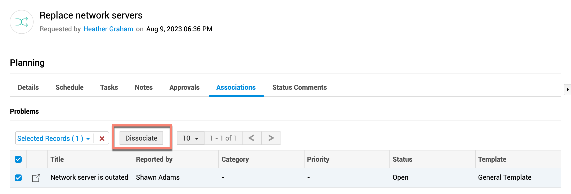 要移除任何已关联的问题或请求,请选择它们并单击解除关联。
