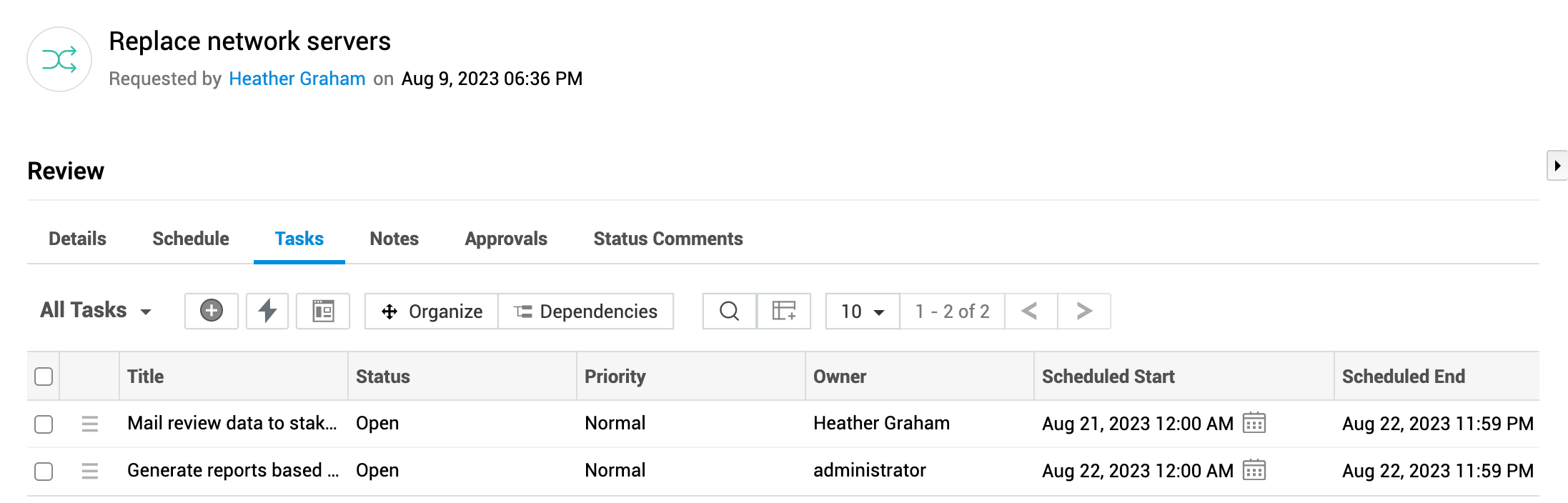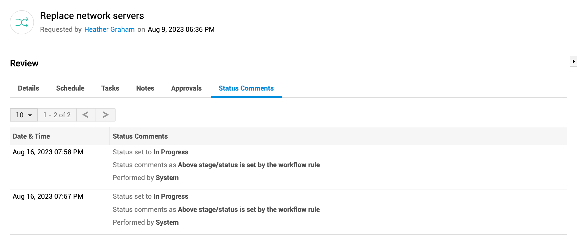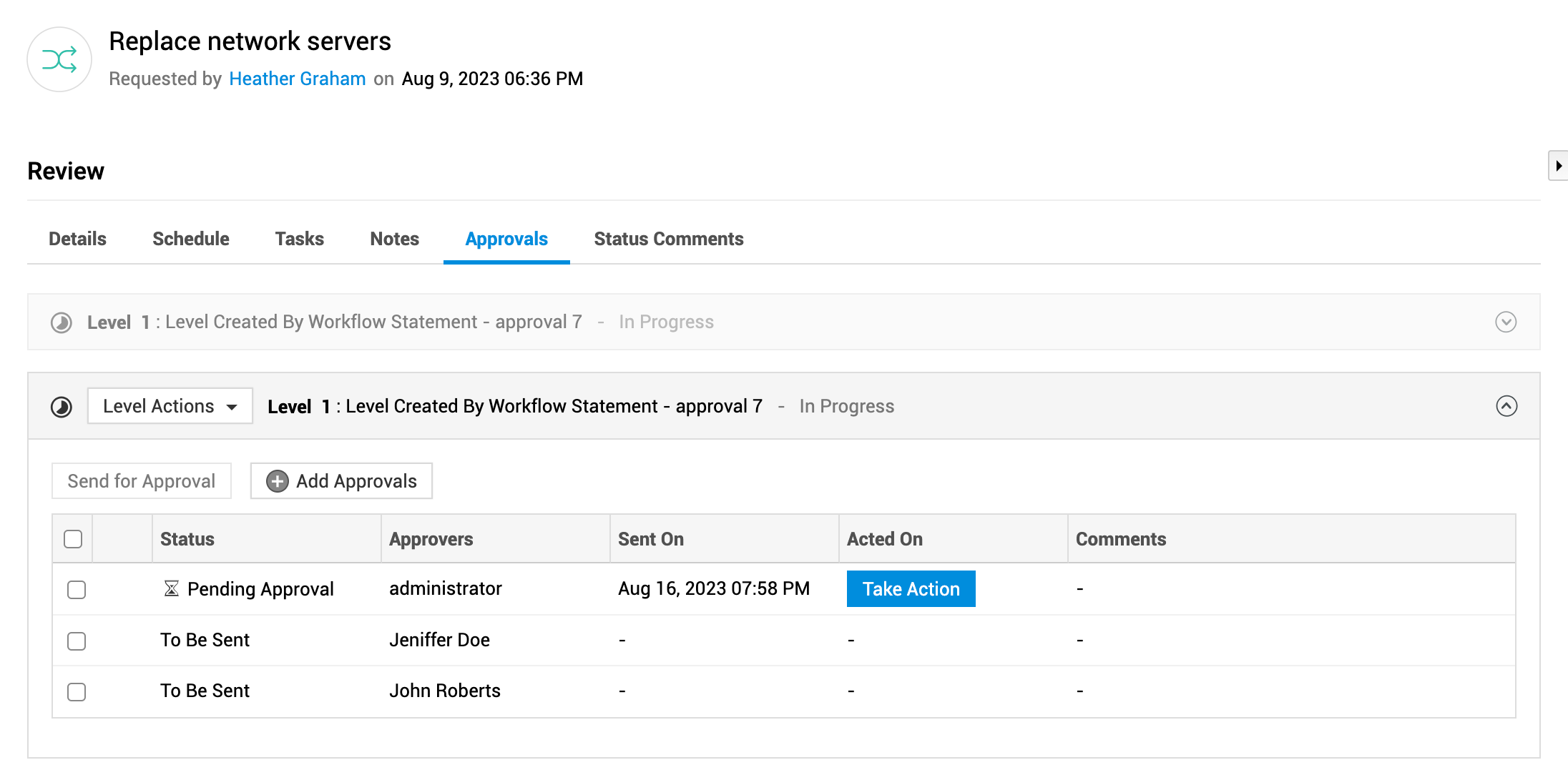 通过工作流跟踪与审查阶段关联的审批级别。根据您的权限,您可以对变更执行审批操作。