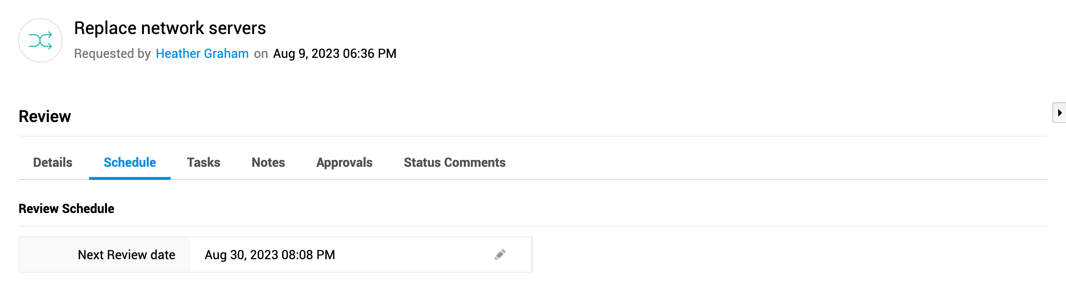 在计划子选项卡中,单击下一次审查日期字段旁边的