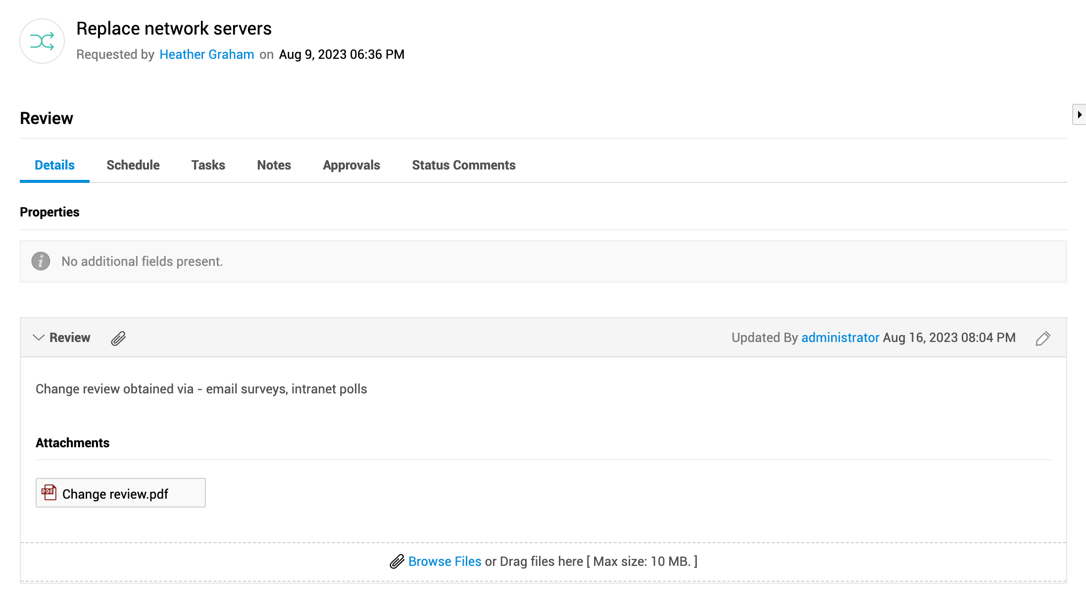 在审查阶段所做的分析将被记录下来,以帮助变更管理团队在未来进行回顾并采取主动措施。