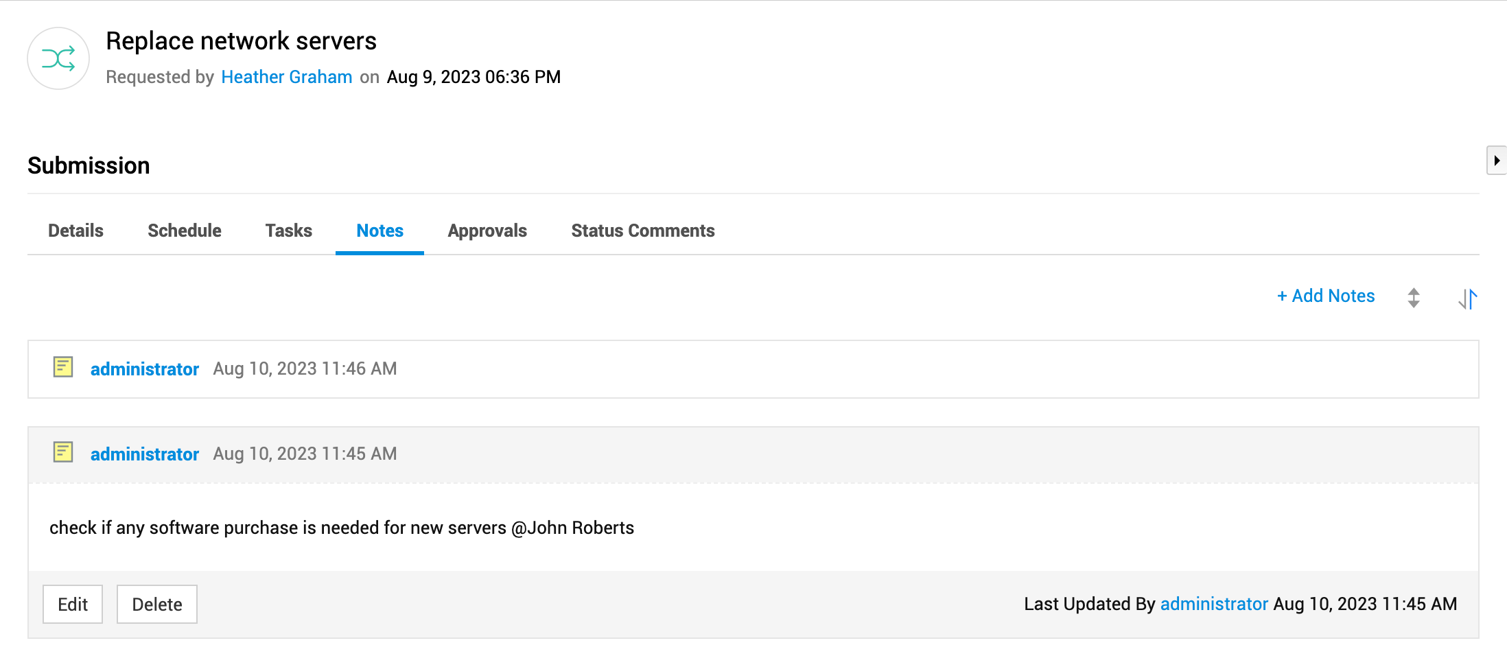 技术人员可以添加注释,补充有关提交阶段的重要信息,并标记用户以通知他们。