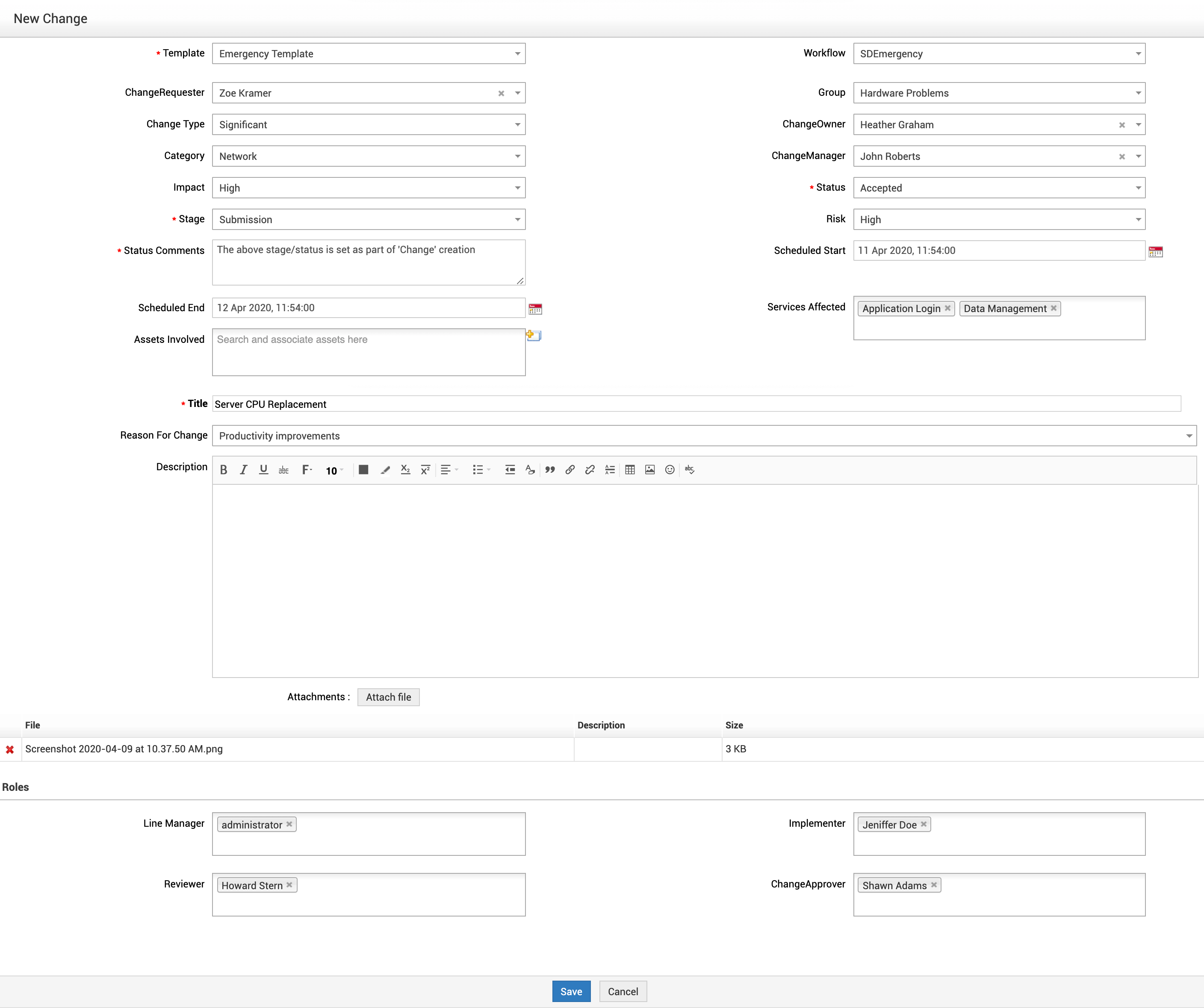选择变更模板和工作流,并在显示的表单中填写所需信息。