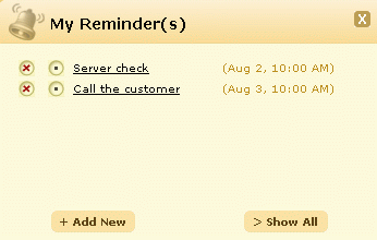 点击动作页签 -> 点击查看提醒选项。打开显示所有提醒页面,如下图所示。列出所有提醒,并按照时间先后顺序排列。