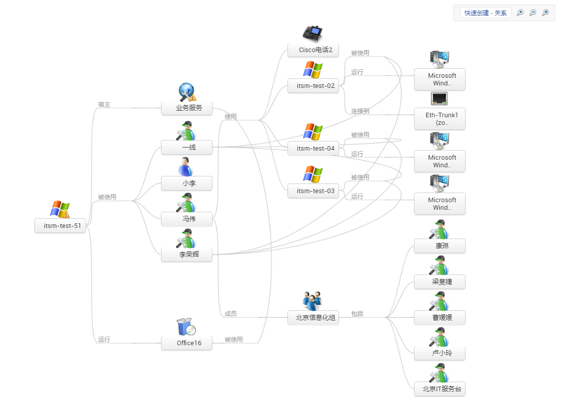 ServiceDesk Plus提供CMDB,用于追踪由不同配置项类型(如:资产、业务、IT服务等)发起的请求、问题、变更等的处理情况。它通过配置项关系图来反映这些配置项故障所引起的影响,从而采取什么措施能使这种影响最小化。因此可以说,CMDB就像一个决策工具,在影响分析、关键原因分析、决策制定中起着重要的作用。