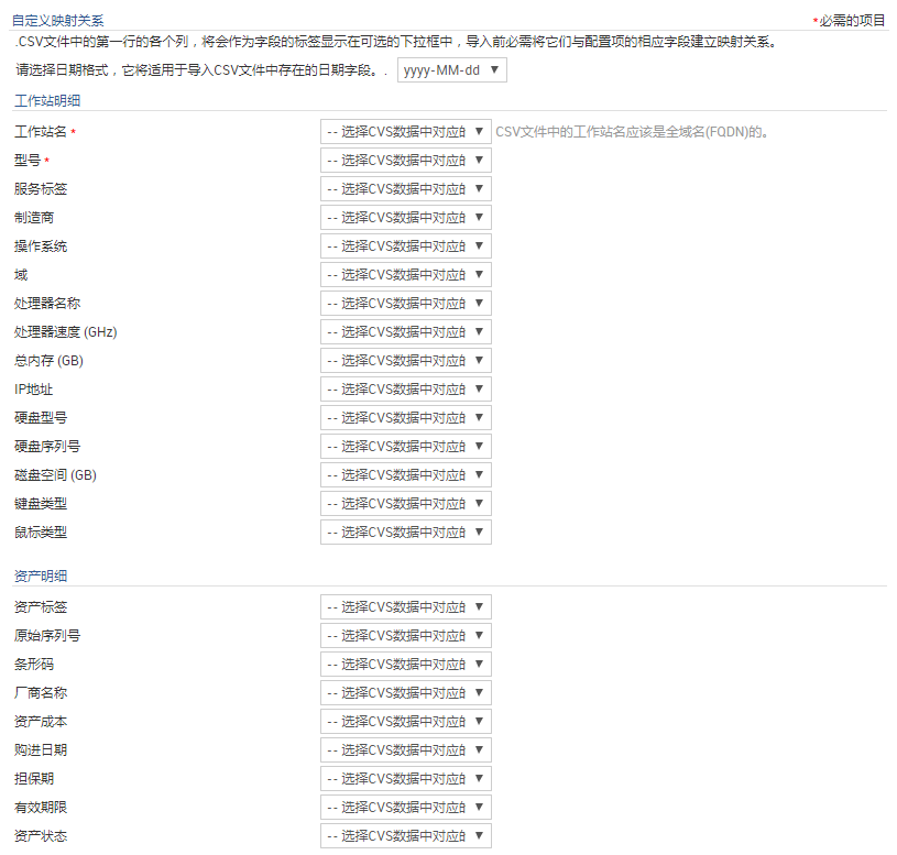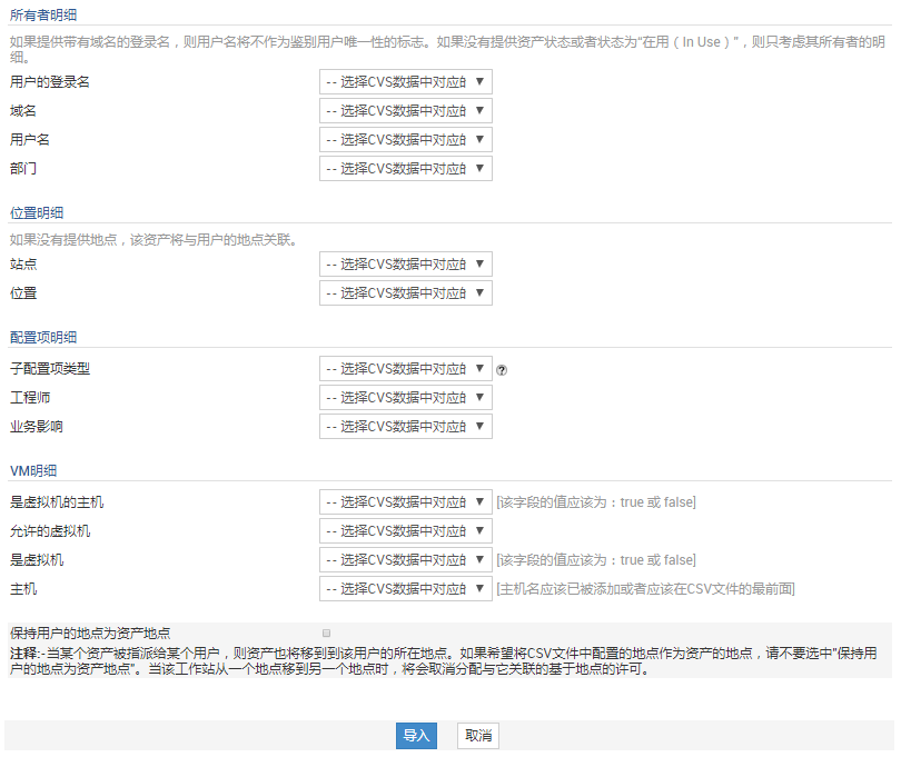点击导入按钮,将从CSV文件导入配置项的详细信息。