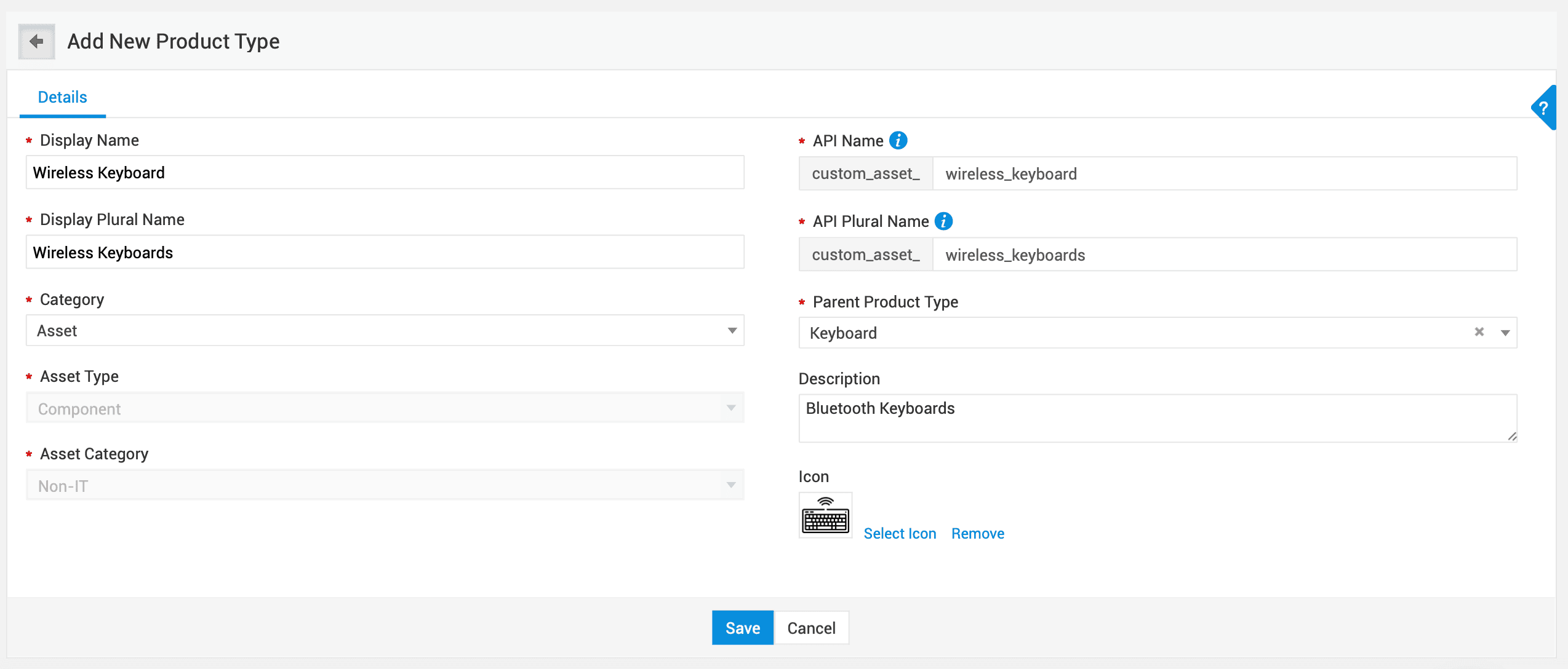 在 ServiceDesk Plus 中,所有资产 是资产(IT 和非 IT)及组件的父产品类型。为父产品类型自定义的布局将适用于所有子产品类型。