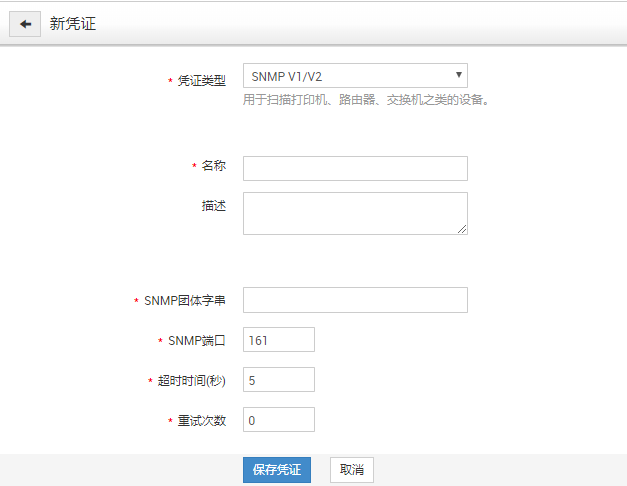 SNMP V1/V2 凭据是用来扫描如打印机,路由器及交换机等网络设备的