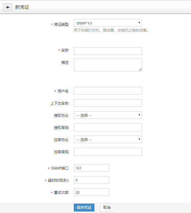 SNMP V3 凭据是用来采集如打印机,路由器和交换机等网络设备的信息的
