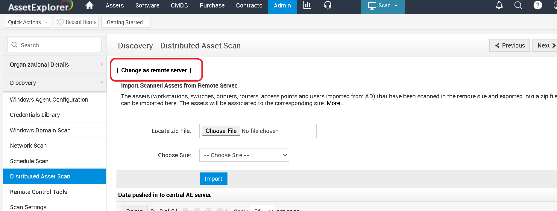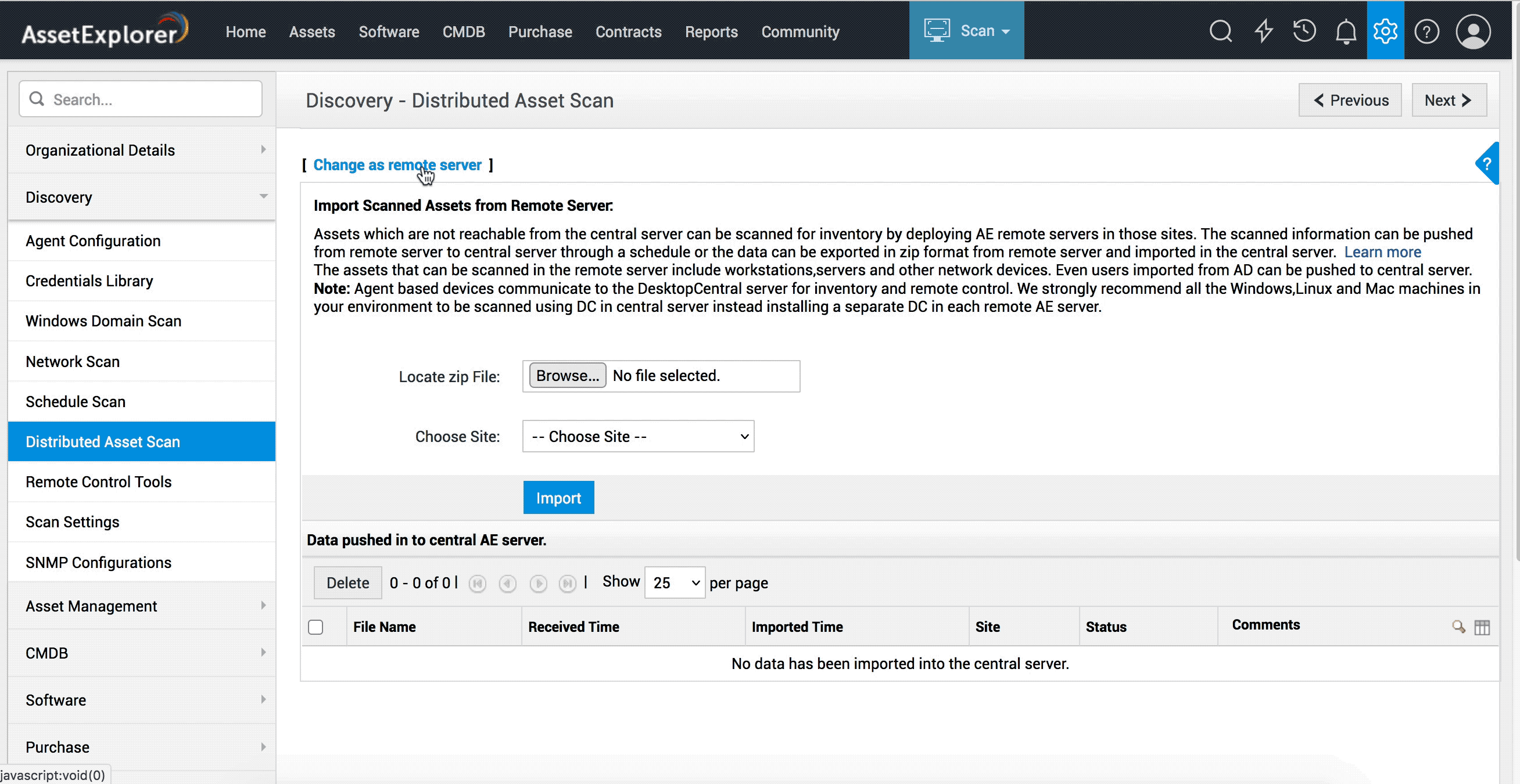或者,您也可以转到 发现 > 分布式资产扫描,并选择“切换为远程Server”选项。