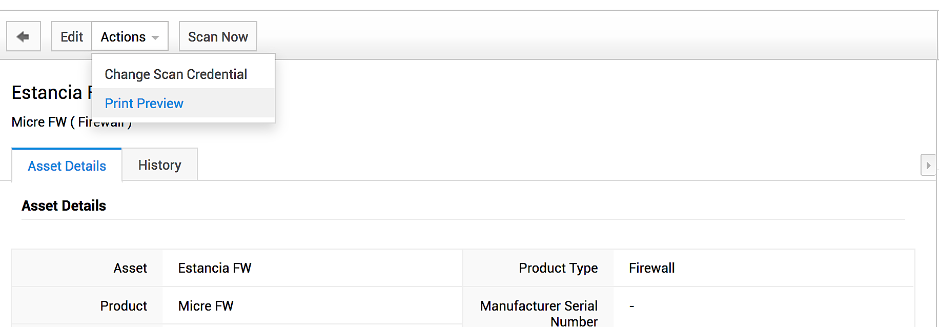 其他资产(交换机、route、IP 电话) | 更改扫描凭据、打印预览 |