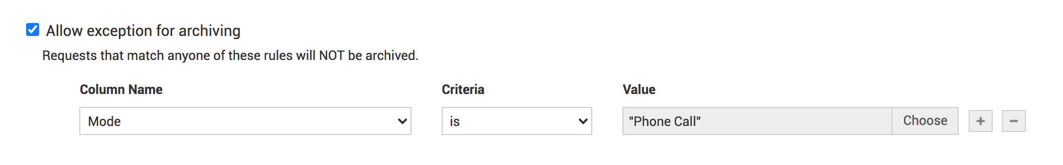例如,您可以设置条件以归档所有在 1 年前创建的已解决/已关闭请求。为此,请在规则部分选择以下值:请求状态为 已解决/已关闭,并且 创建日期,早于 1 年。设置好条件后,单击保存。