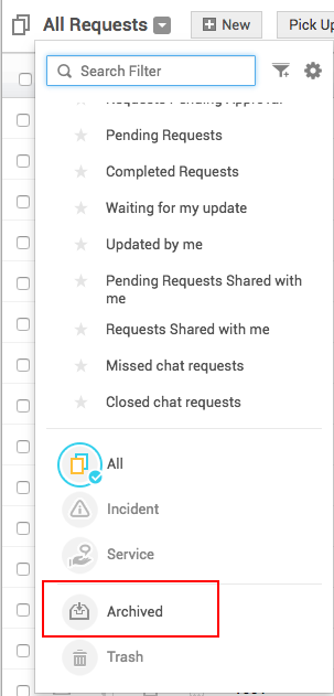 要查看这些请求,请转到 请求,然后从 请求 下拉列表中选择 已归档。