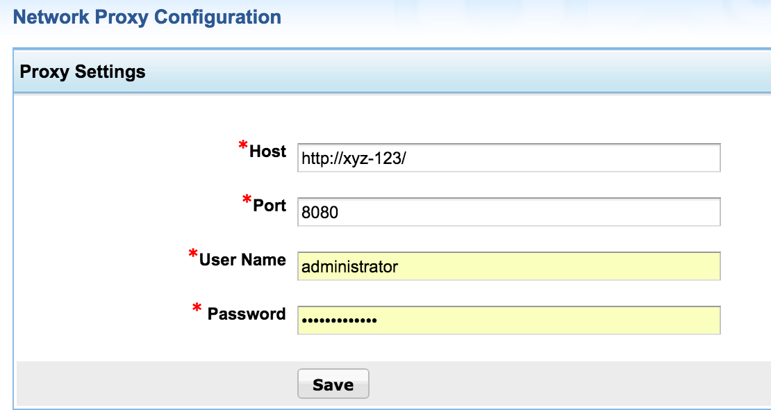 Password : The password for the proxy settings has to be Specified.