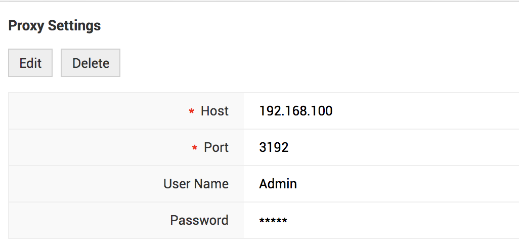 保存代理配置后,您可以在页眉中对其进行 编辑/删除。