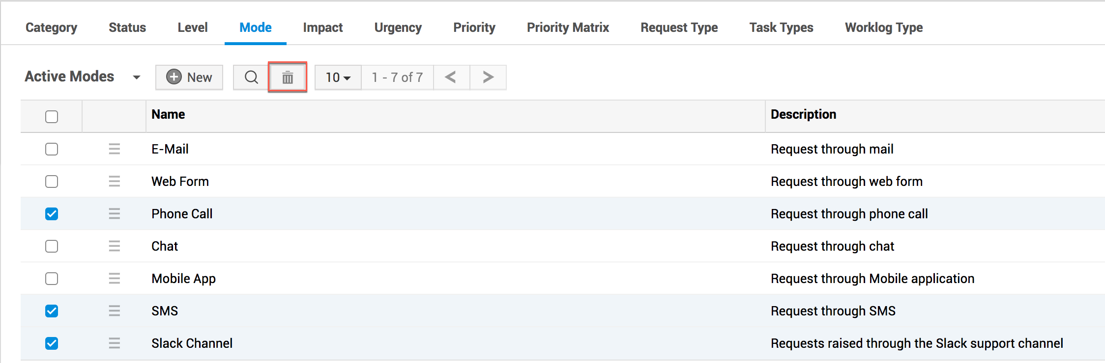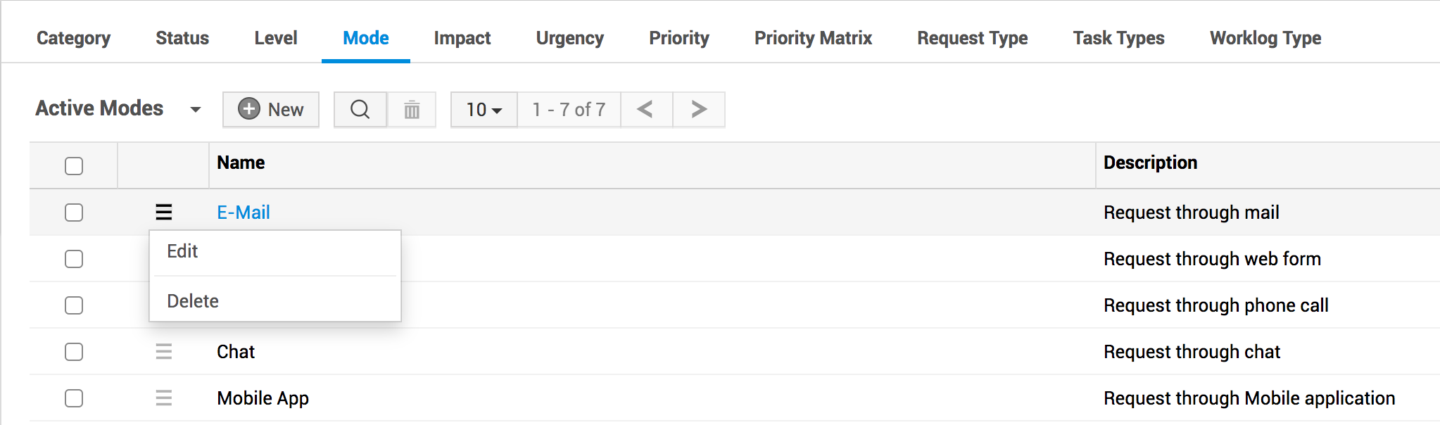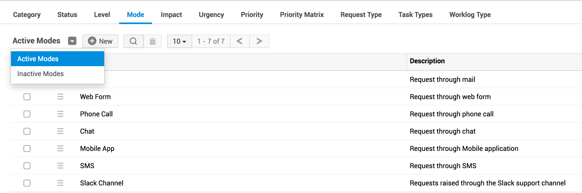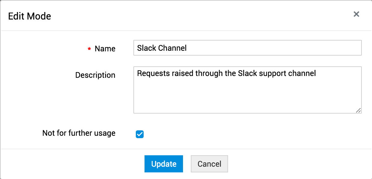 ServiceDesk Plus 允许用户通过多种方式记录事件并提交服务请求,这些方式称为模式。默认情况下,用户可以通过以下模式提交请求: