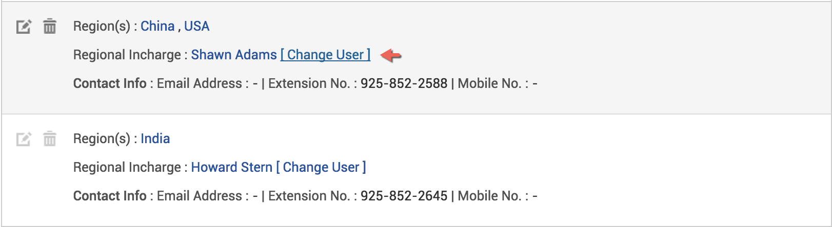 编辑用户关联。 - 您可以使用此选项添加/删除区域、部门和站点。
