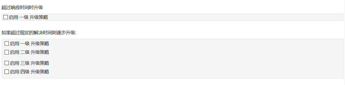 设置执行升级之前所允许的解决问题的时间。同样,您可以设置4级升级策略。