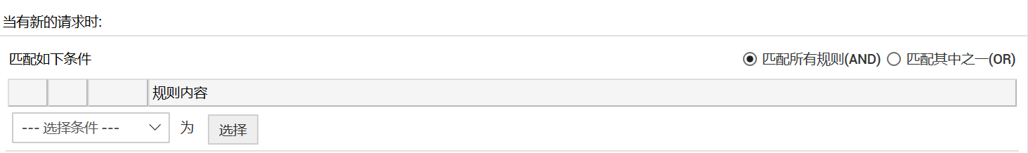 在服务级别协议规则模块设置服务级别协议的规则和标准。缺省情况下,选中匹配所有规则单选按钮。如果仅需匹配其中之一,不需要全选,就请选择匹配其中之一按钮。