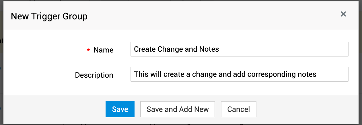 要创建新组,请单击“触发器组”。在显示的页面上,提供名称和说明,然后单击“保存”。