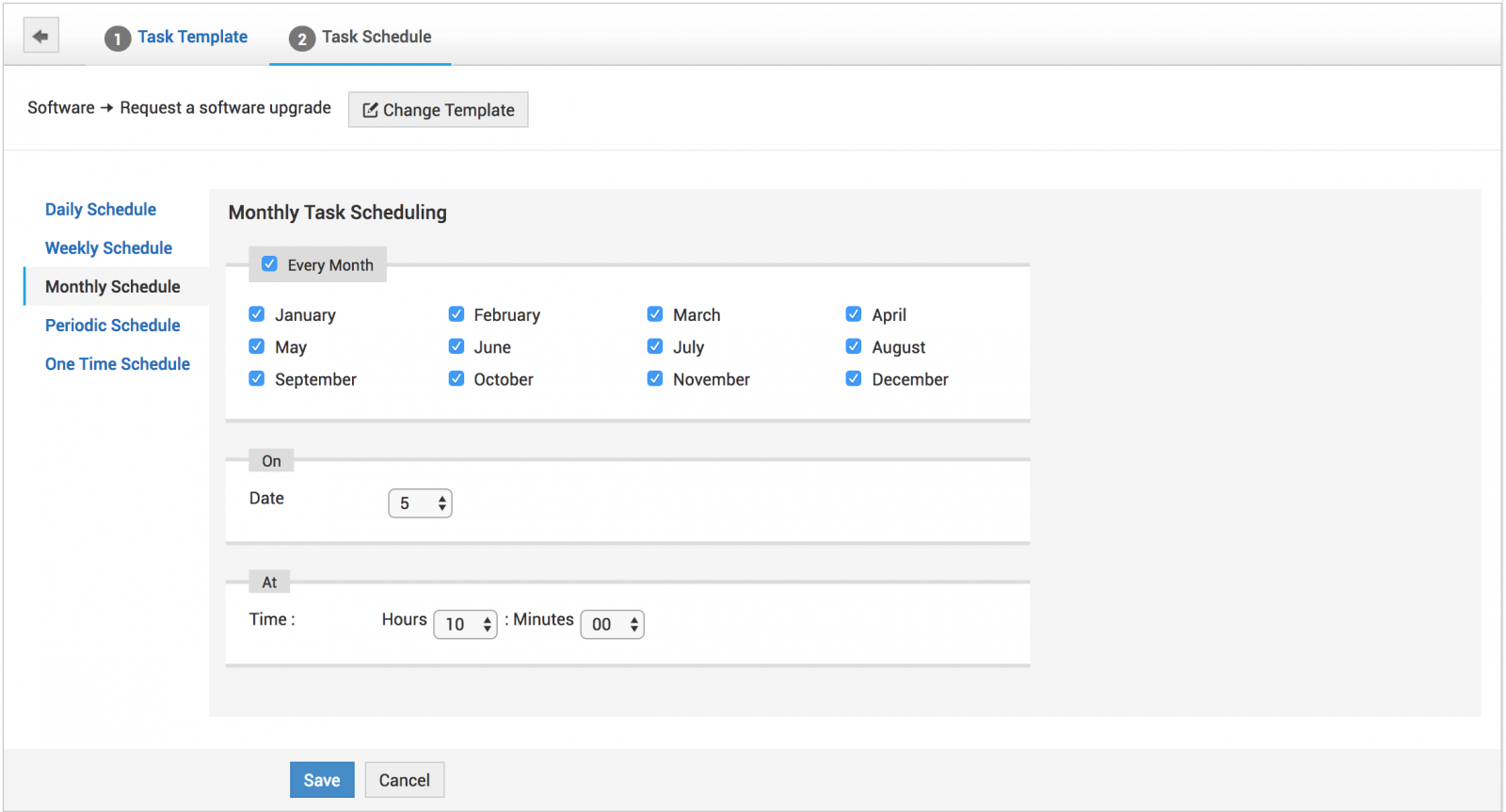 选中“每个月”旁边的复选框以选择运行任务的月份。