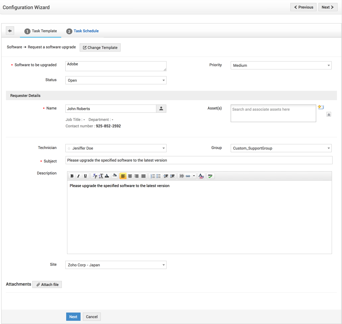 要创建任务模板,单击选择模板,然后从模板类别中选择一个模板。*服务模板和请求模板都会列在这些类别下。