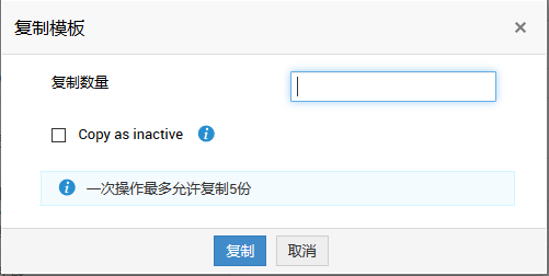 点击预览菜单右侧的复制模板按钮,对当前模板执行复制操作。您可以最多复制5份副本,并将其设置为非激活状态。当您在相应的副本上执行完变更后,可将其激活。