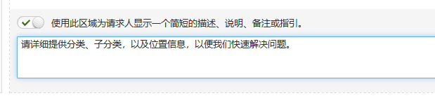 您也可以为模板设置一段说明/指引,提示用户/技术员如何填写请求表单。点击切换开关,启用此功能,并添加必要的信息。