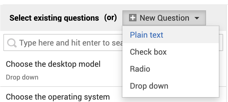 接下来,您可以选择从现有问题列表中选择问题,或创建新问题。
