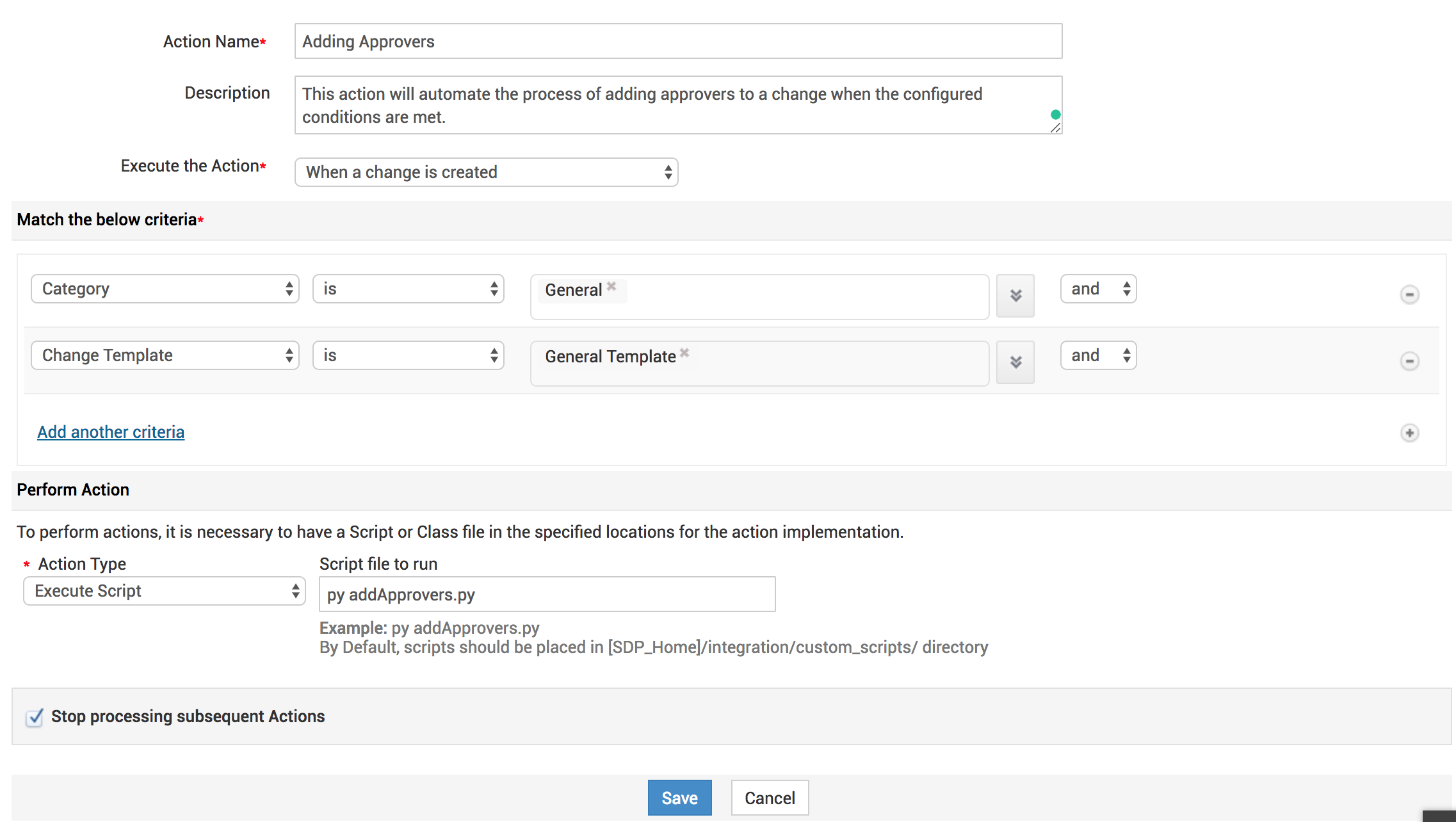 对于“执行脚本/类”操作类型,请在提供的字段中指定文件名。点击此处查看自定义脚本配置示例。