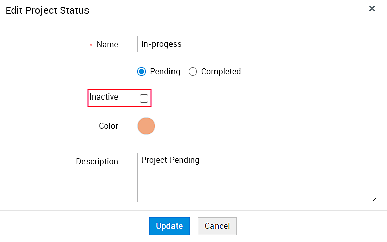 重新激活非活动项目状态 - 编辑一个非活动项目状态并取消选中“非活动”复选框。单击“更新”以重新激活该项目状态。