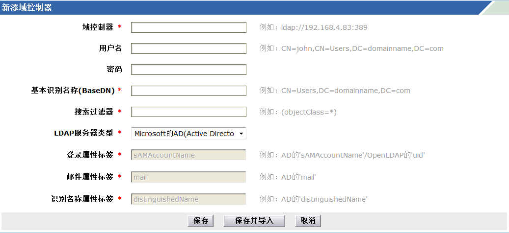 点击保存按钮,保存域控制器的设置,也可以点击保存并导入按钮,保存设置并导入用户信息。