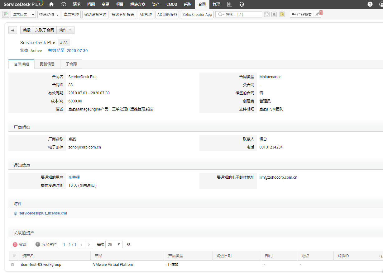 在查看合同页面中,点击合同ID或者合同名将弹出合同明细。
