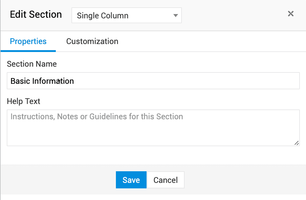 | 帮助文本 | 所有字段类型 | 为字段提供附加上下文。用户将鼠标悬停在字段上时,该文本会显示为工具提示,帮助他们了解应输入什么信息。 |