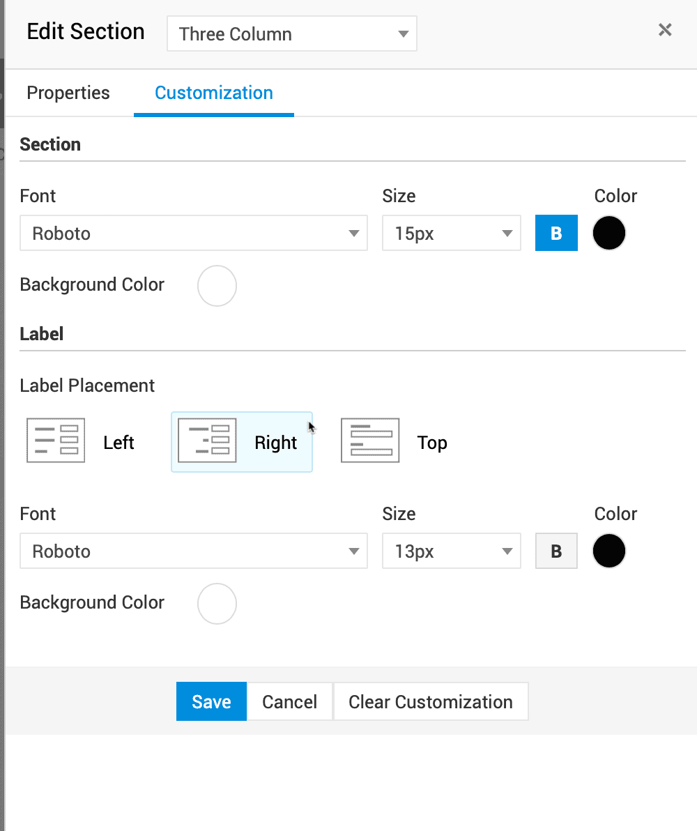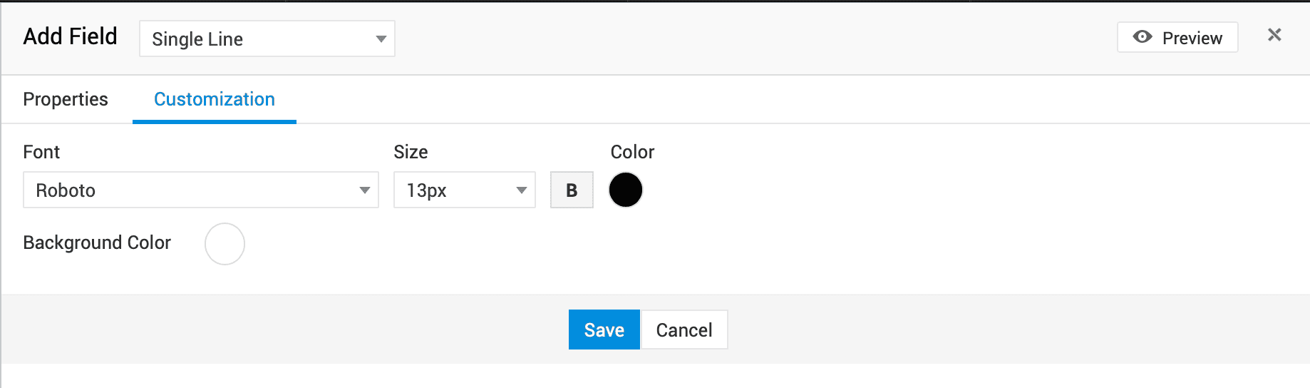 在侧滑面板中的 自定义 选项卡内,您可以自定义字段样式。
