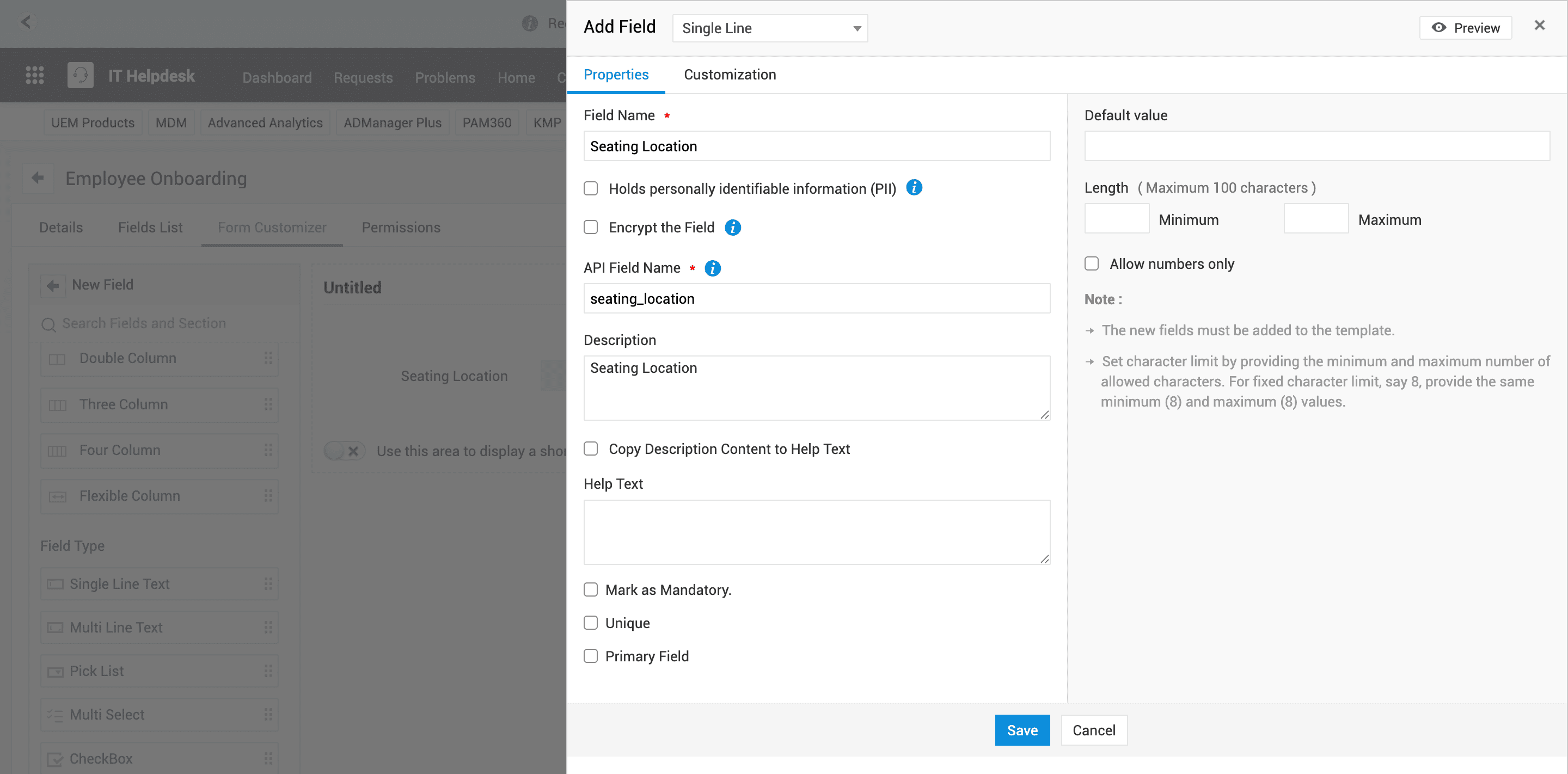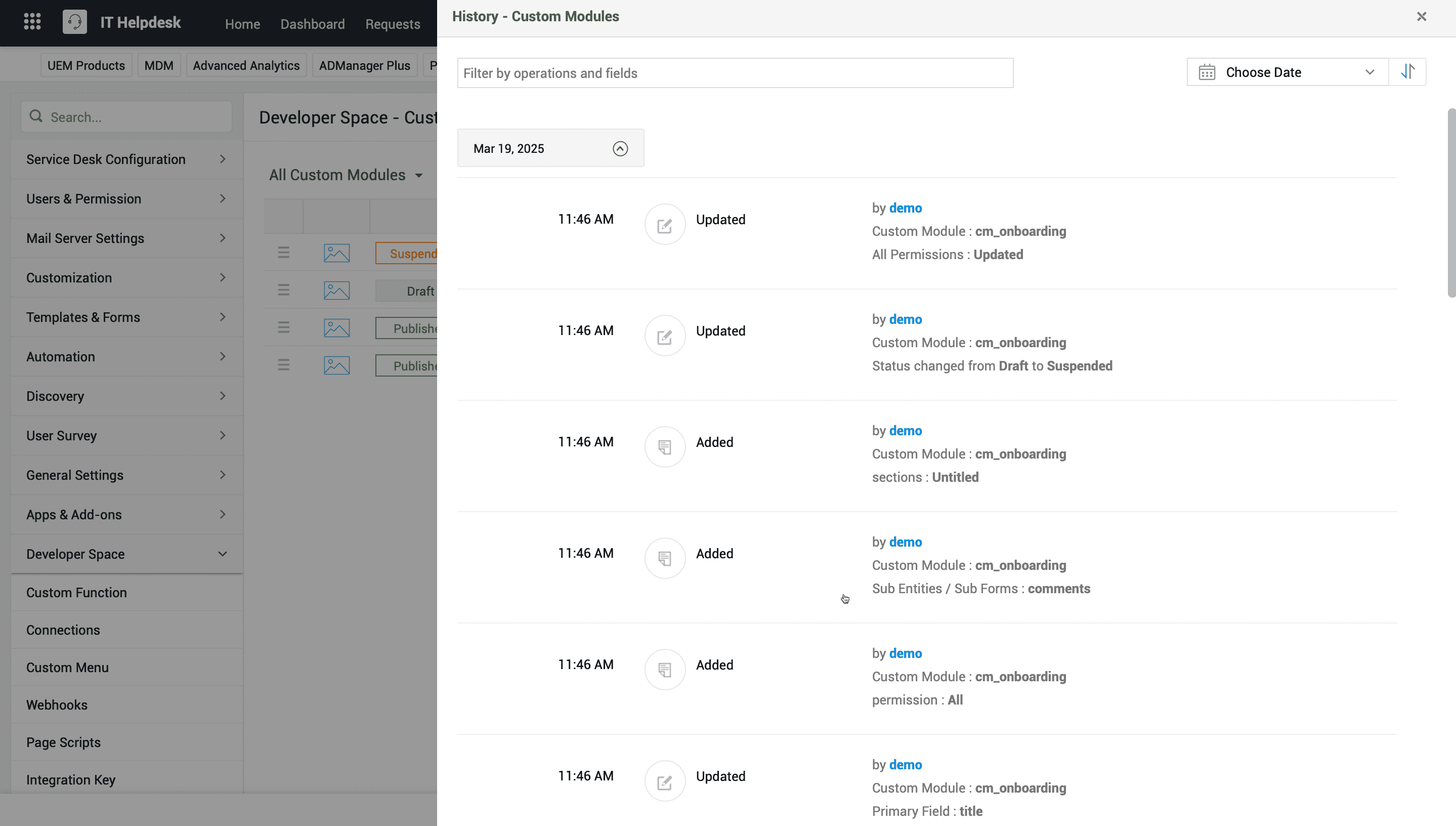 ServiceDesk Plus 附带了多个内置模块(如请求、变更、资产等)及其默认配置(如状态、优先级矩阵、关闭代码等)。但是,贵组织的需求可能需要超出这些默认模块和配置范围的实体、字段和工作流。