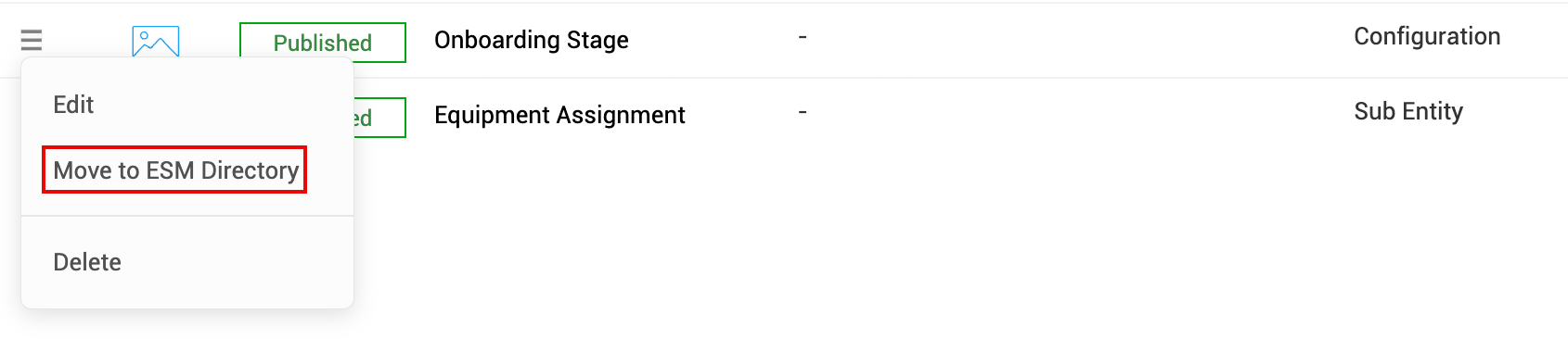 如果某个自定义配置包含门户专用的引用实体字段,则无法将其移动到 ESM 目录。