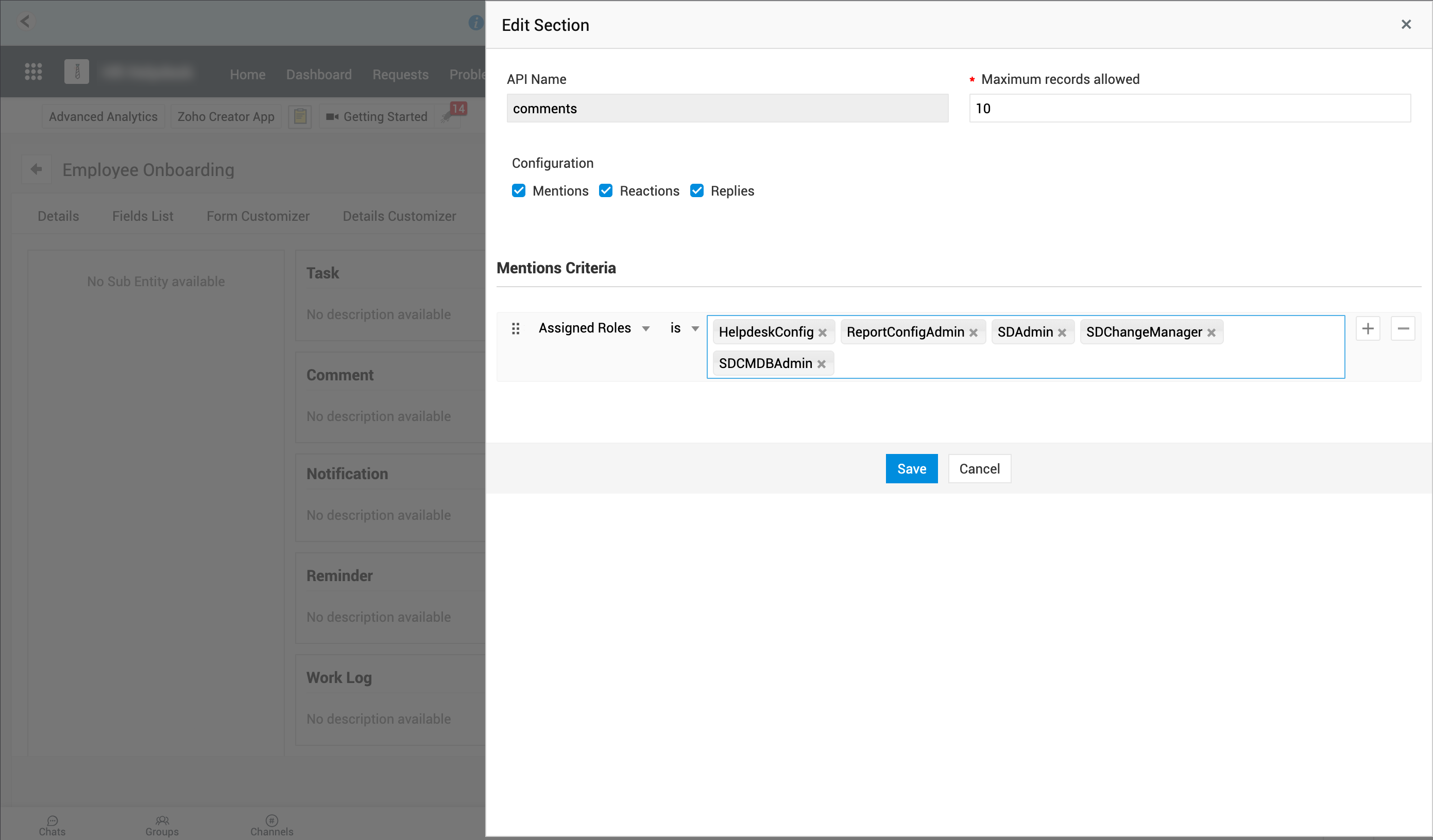 | 快速添加 | 无需导航到表单,即可使用预填充值或仅输入关键字段来创建记录。 | HR 可以快速记录入职请求,并带有预填充值(例如,部门 - HR;优先级 - 中)。他们只需输入员工姓名和入职日期。 查看方法。 |